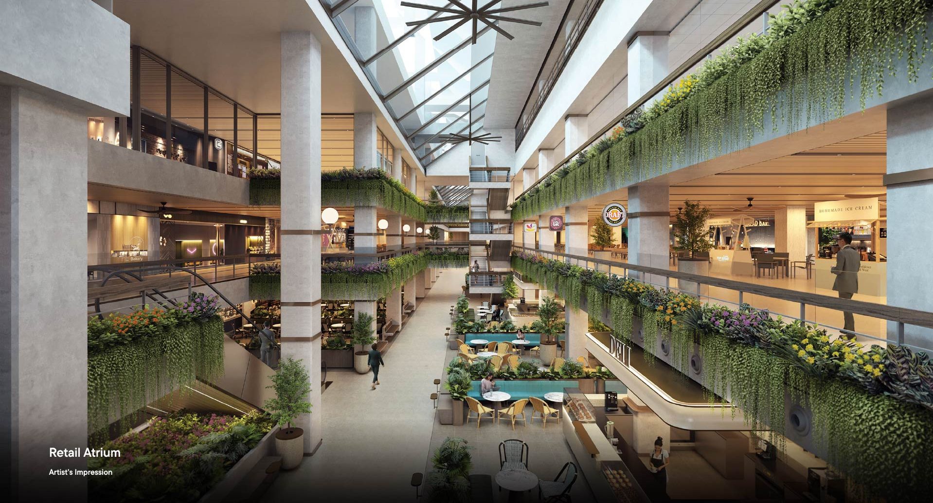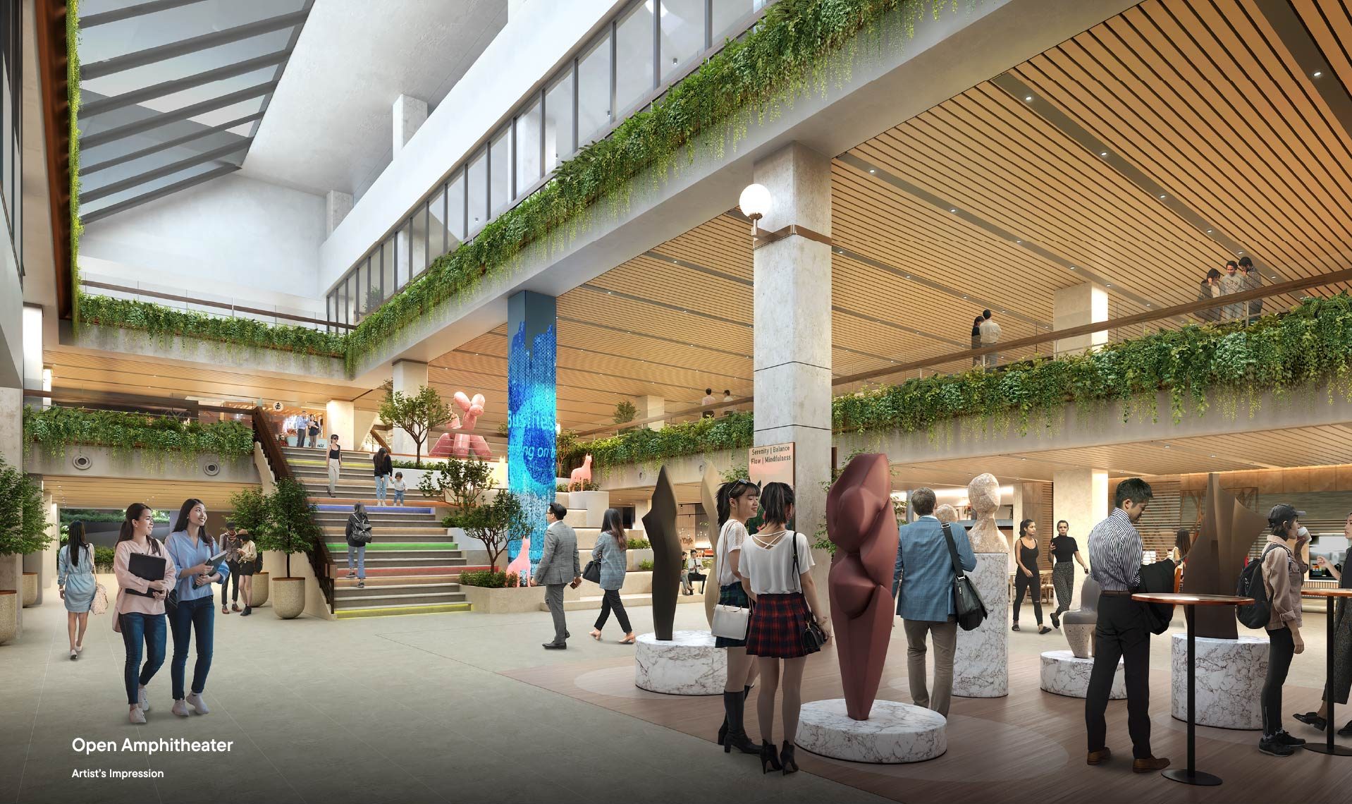 Spacious walkways lined with lush greenery define the retail podium. A dedicated amphitheater at one end enhances its vibrant character and community appeal, hosting engaging lunchtime performances and exhibitions. Engineered to maximize natural ventilation and introduce abundant natural lighting, making the retail podium bright, open, and conducive to a productive and enjoyable experience for all.